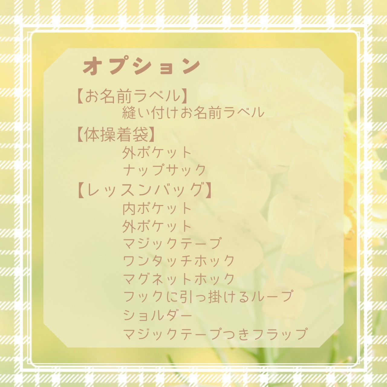 (レッスンバック*上履き入れ*体操着袋*お弁当袋*コップ袋*ランチマット)