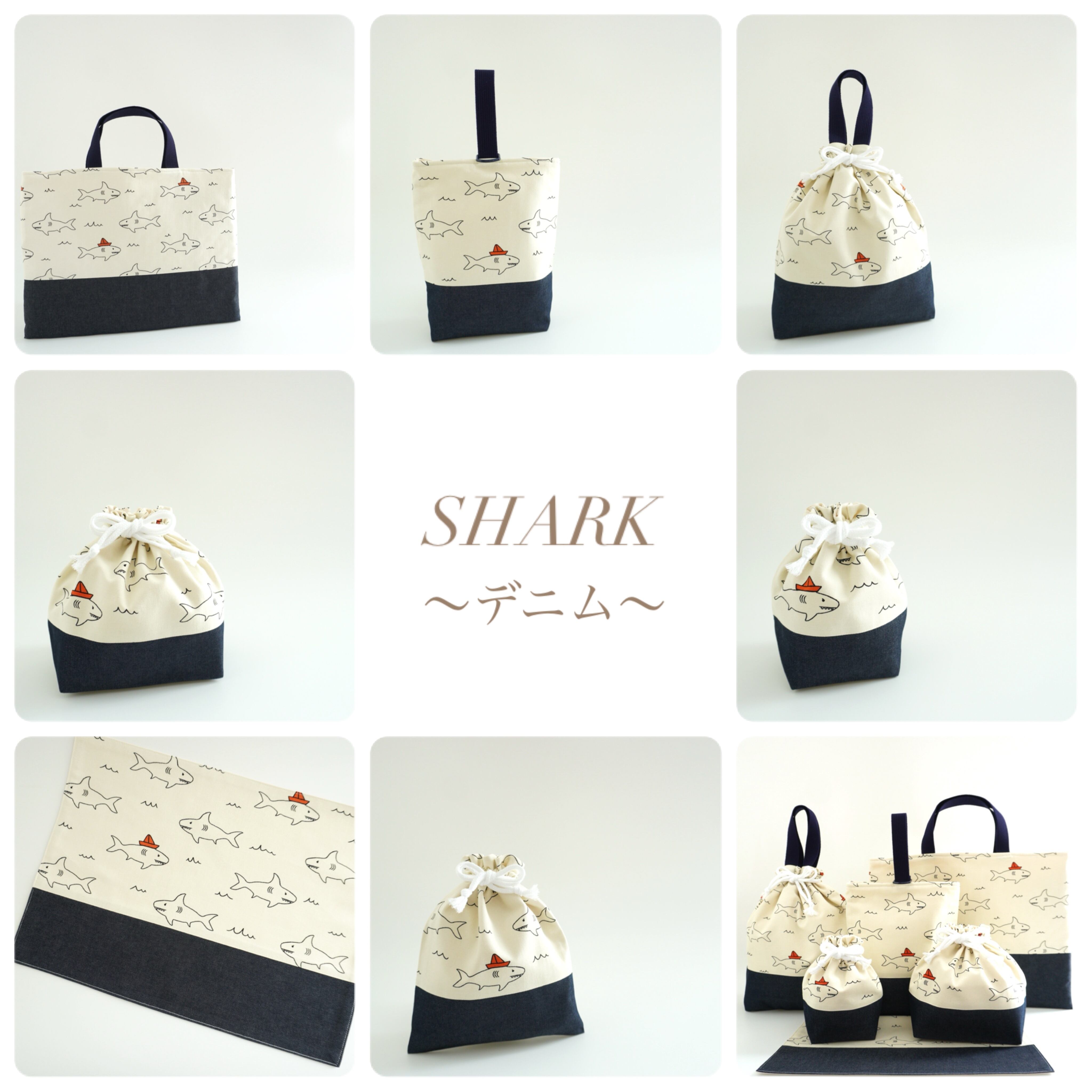 【°˖✧新作✧˖°】『 SHARK ~デニム~ 』 * 給食袋 巾着袋 * 入園グッズ 入学グッズ * 男の子 保育園 幼稚園