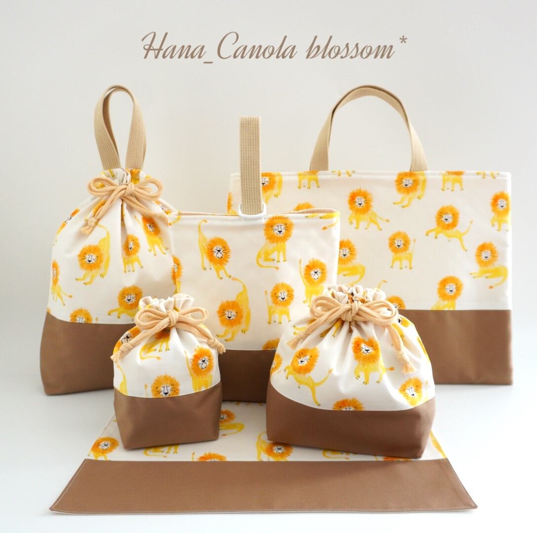 『 Hello lion 』 * 6点セット レッスンバッグ 上履き入れ 体操着袋 お弁当袋 コップ袋 ランチマット * 入園グッズ 入学グッズ * 男の子 女の子 保育園 幼稚園