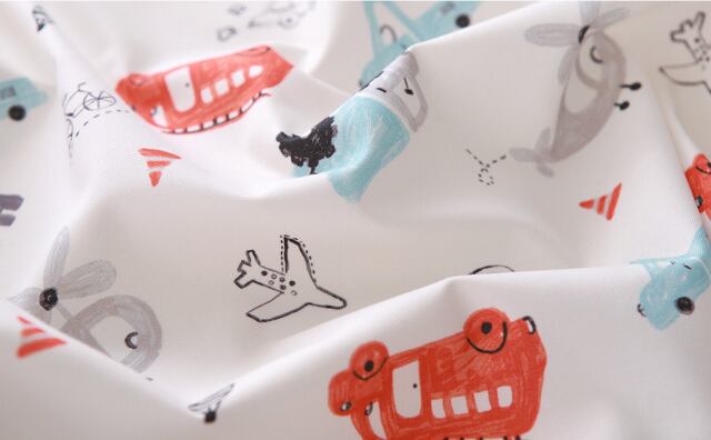 大人気のデコレクションズのはたらく乗り物が描かれている生地にデニム生地を合わせて、
