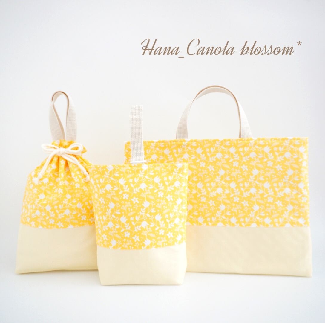 『 yellow garden ~ベビーイエロー~ 』 * レッスンバック 上履き入れ 体操着袋 3点セット * 入園グッズ 入学グッズ* 男の子 女の子 保育園 幼稚園