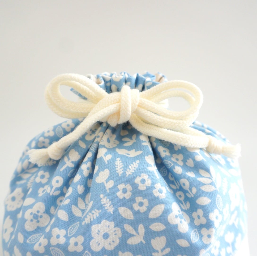明るいスカイブルー地に白い花や葉が描かれている、ナチュラルポップなデザインです。