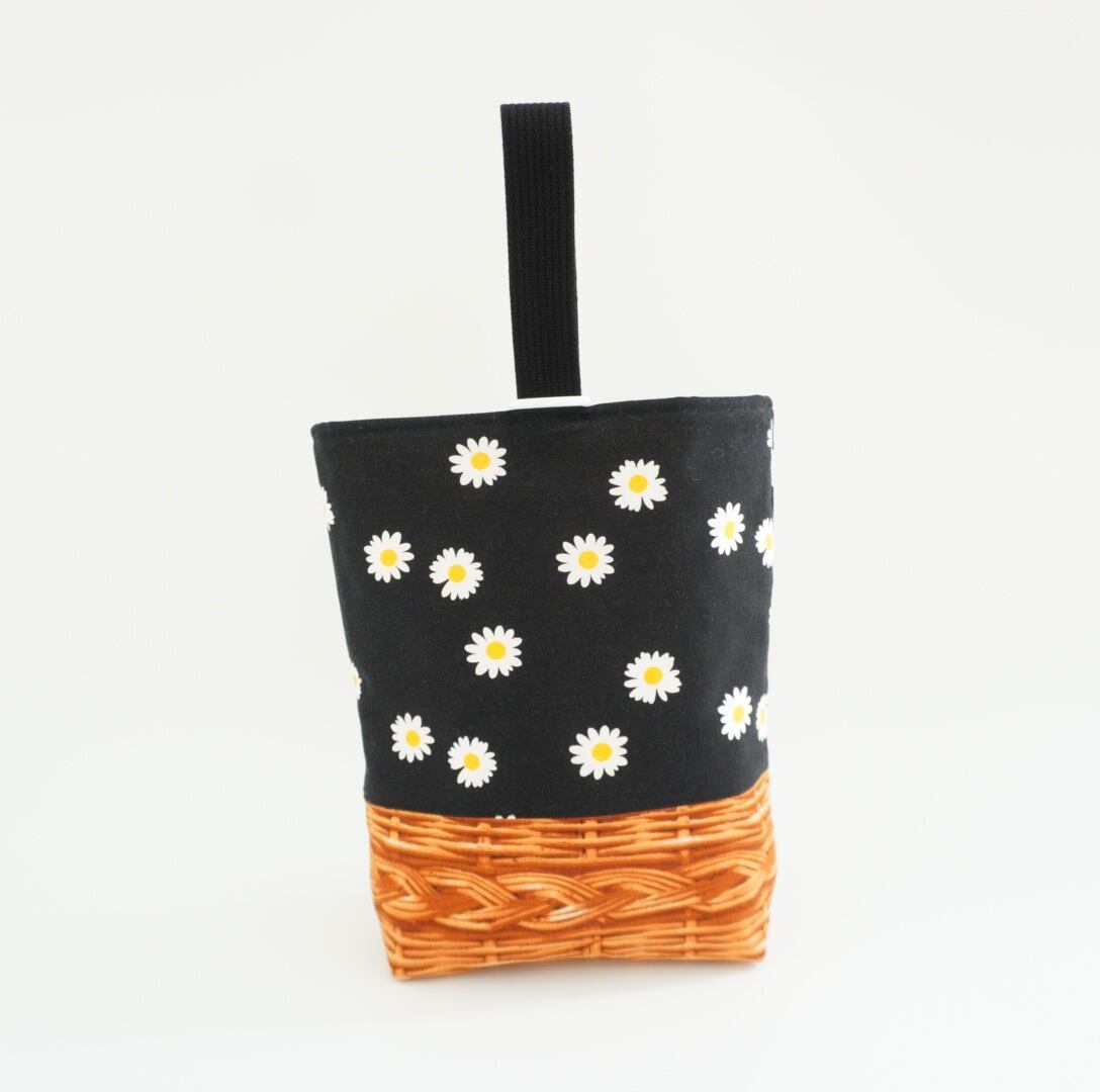 デコレクションズさんの可愛らしいデイジーのお花の生地に、カゴのデザインの生地を合わせて、