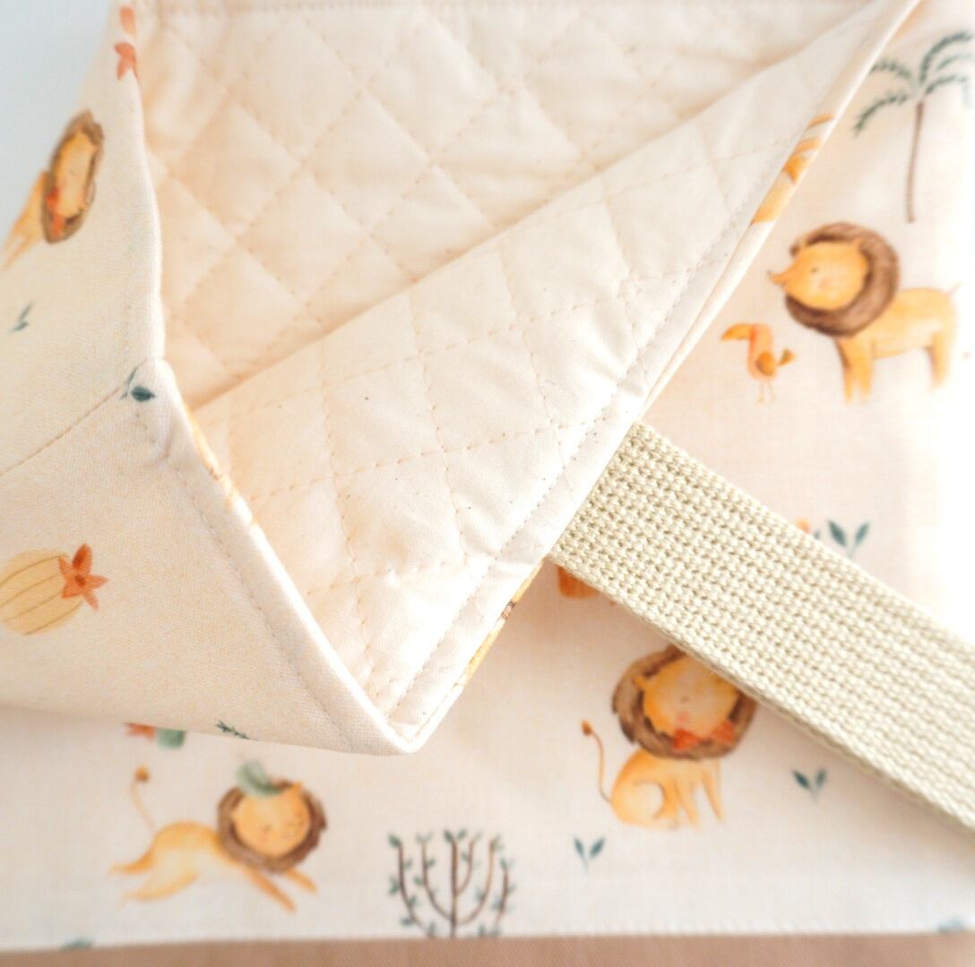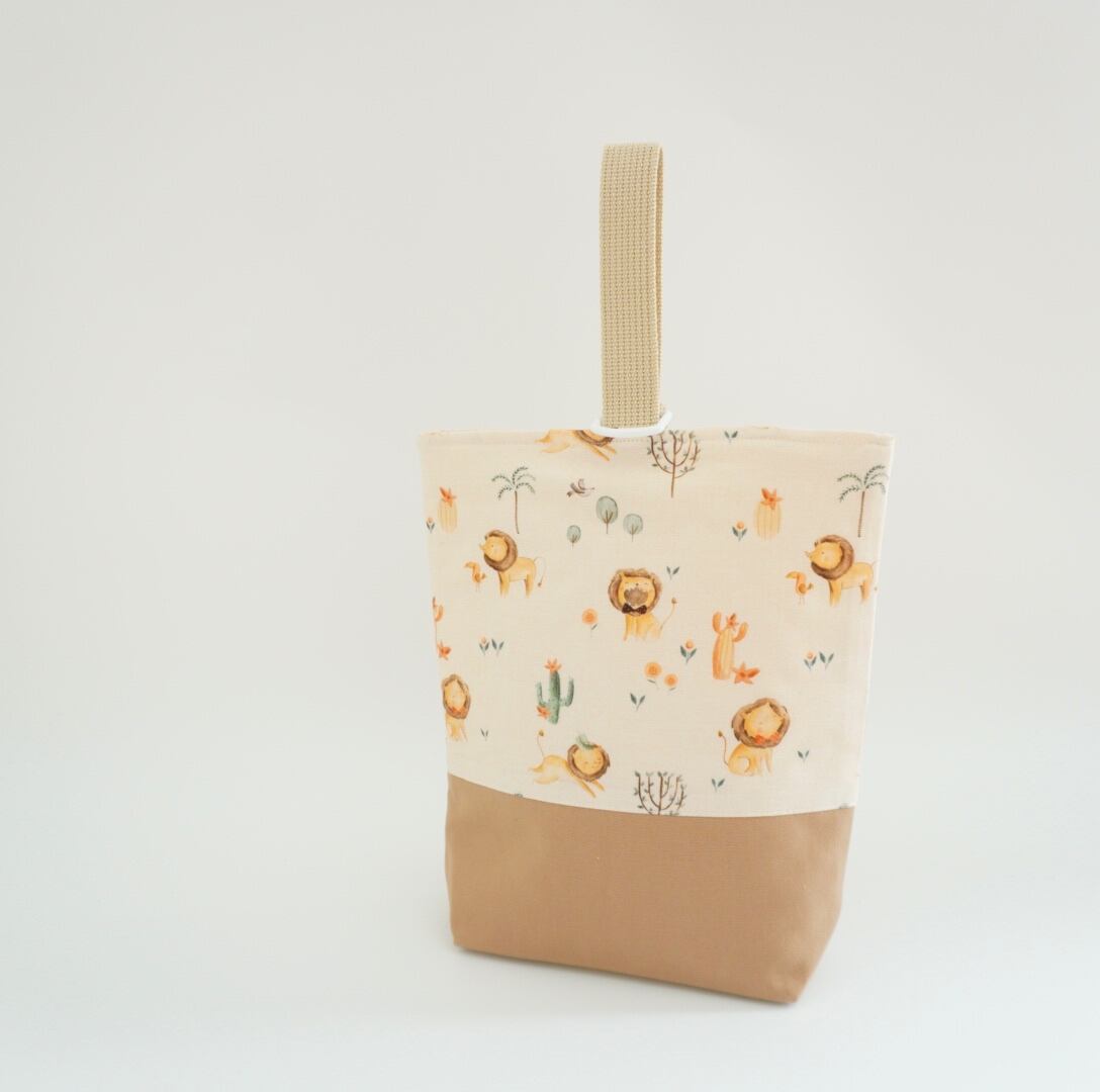 デコレクションズさんの可愛らしいニコニコ顔☺︎のライオンの生地に、モカベージュの生地を合わせて、柔らかい雰囲気のデザインに仕上がりました。
