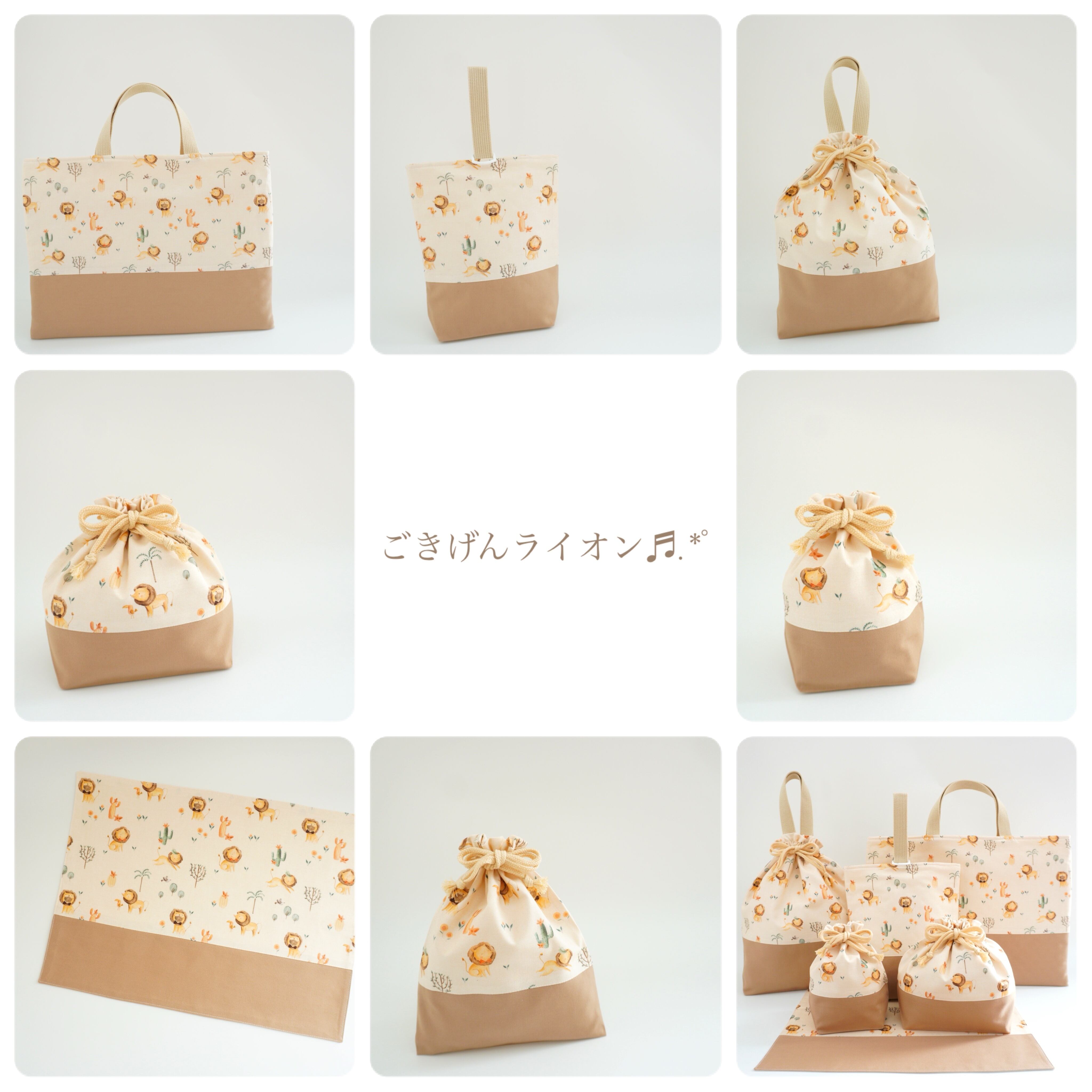 『 ごきげんライオン♬.*゚ 』 * お弁当袋 コップ袋 ランチマット 3点セット * 入園グッズ 入学グッズ * 男の子 女の子 保育園 幼稚園