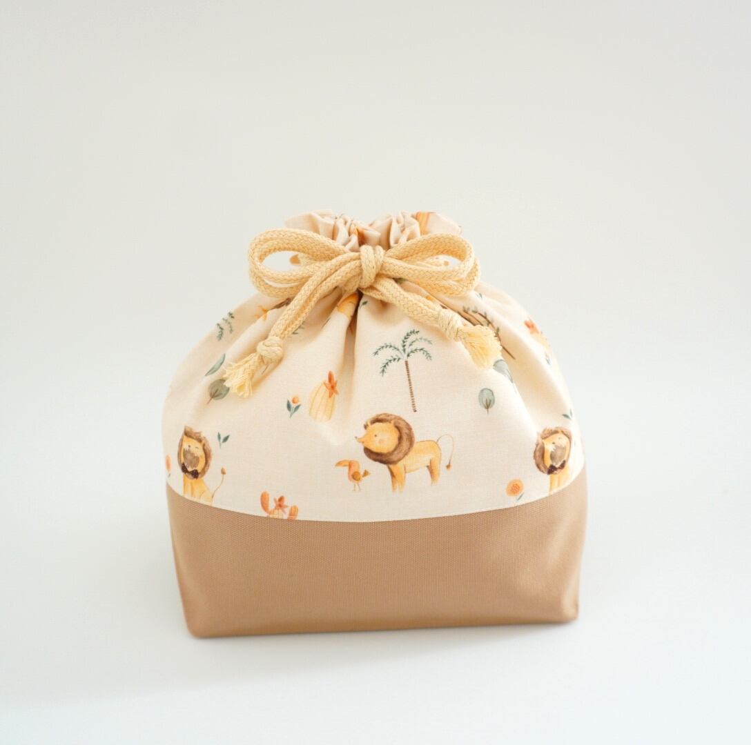 デコレクションズさんの可愛らしいニコニコ顔☺︎のライオンの生地に、モカベージュの生地を合わせて、柔らかい雰囲気のデザインに仕上がりました。