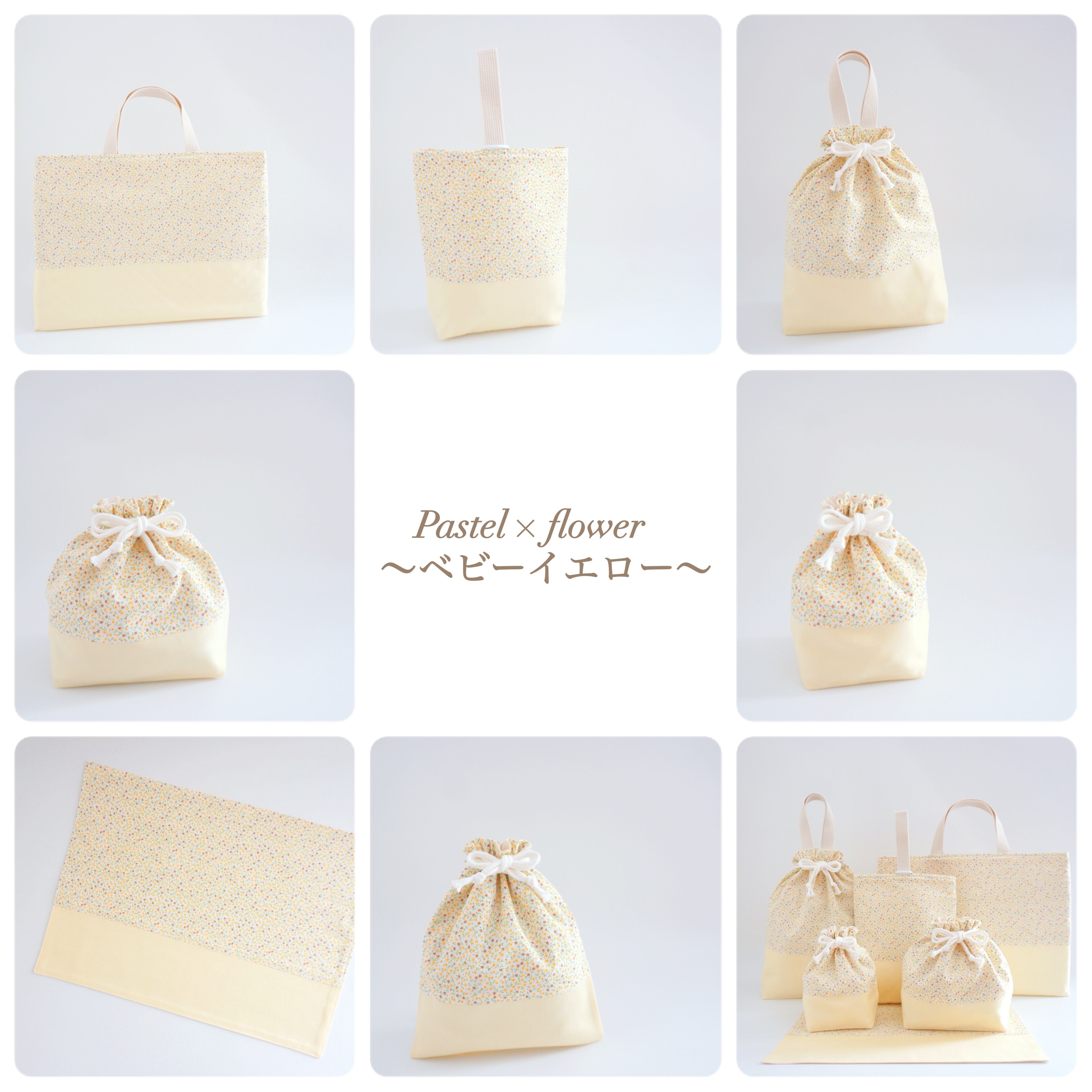 『 Pastel × flower ~ベビーイエロー~ 』 * お弁当袋 * 入園グッズ 入学グッズ * 男の子 女の子 保育園 幼稚園