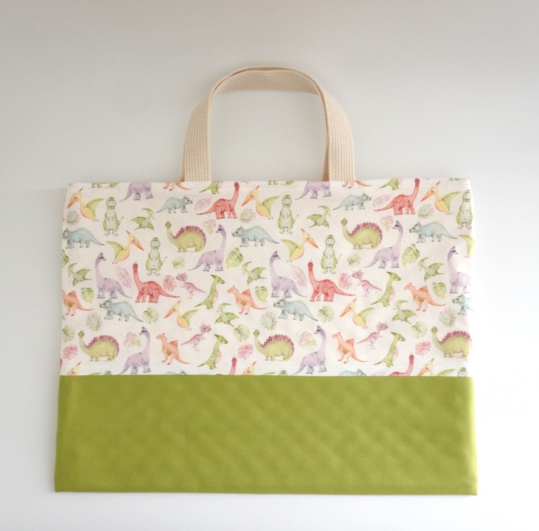 パステルカラーの可愛い恐竜たちとライトグリーンを合わせて、恐竜が大好きな子に向けてお作りいたしました。