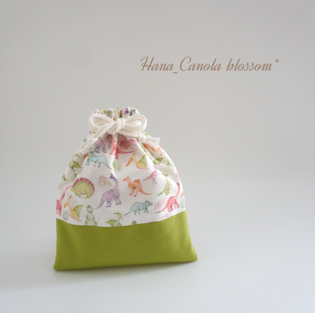 【°˖✧人気作品✧˖°】 『 パステル恐竜 ~ライトグリーン~ 』 * 給食袋 巾着袋 * 入園グッズ 入学グッズ * 男の子 女の子 保育園 幼稚園