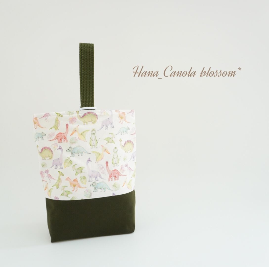 【°˖✧人気作品✧˖°】 『 パステル恐竜 ~ダークグリーン~ 』 * 上履き入れ シューズケース * 入園グッズ 入学グッズ * 男の子 女の子 保育園 幼稚園